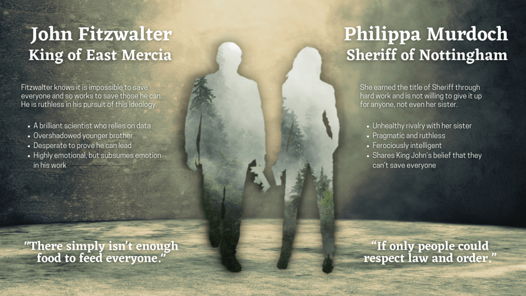 For us, this included a world map because the “England” of HOOD looks different after climate change. We explained the presence of magic and the major war the happened immediately before the story begins.